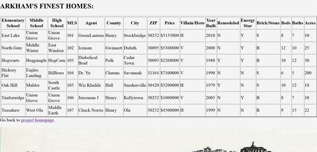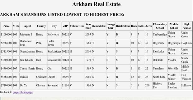<h2>ARKHAM'S MANSIONS LISTED LOWEST TO HIGHEST PRICE:</h2>