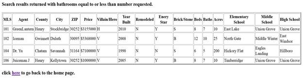 <h3>Search results returned with bathrooms equal to or less than number