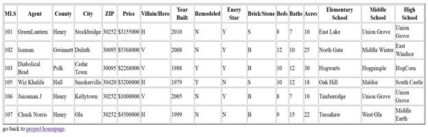 <th>Agent</th> <th>County</th> <th>City</th> <th>ZIP</th> <th>Price</th>