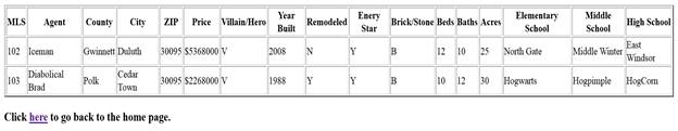 <th>MLS</th> <th>Agent</th> <th>County</th> <th>City</th> <th>ZIP</th>