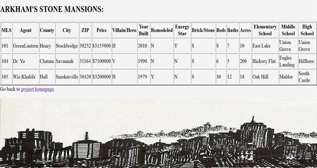 <h2>ARKHAM'S MANSIONS LISTED LOWEST TO HIGHEST PRICE:</h2>