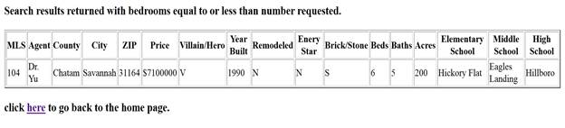 "<tr><th>MLS</th> <th>Agent</th> <th>County</th> <th>City</th>